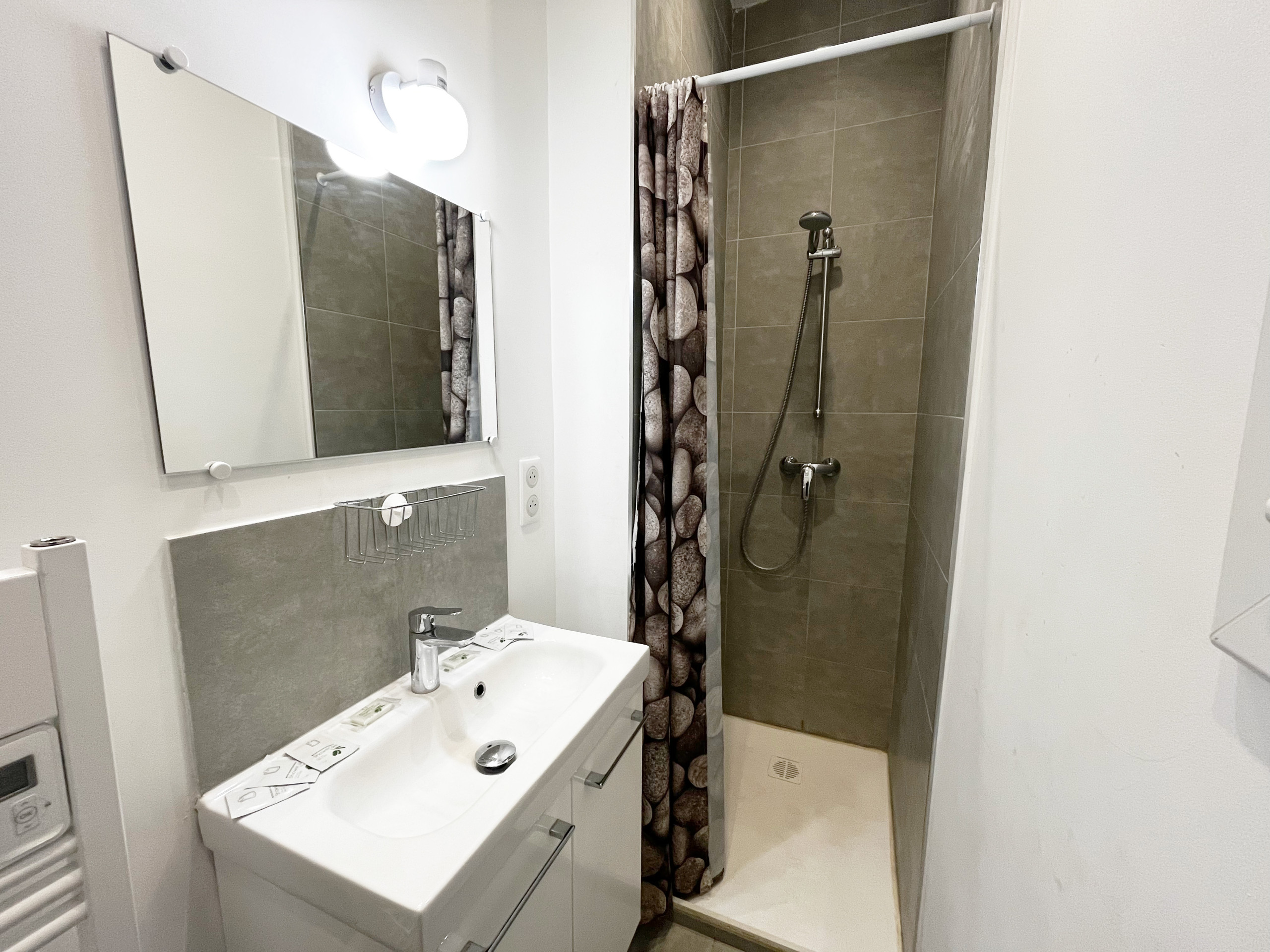 - PRODUITS D’ACCUEIL : miniatures de savon, gel douche, shampoing et lait corporel pour votre arrivée