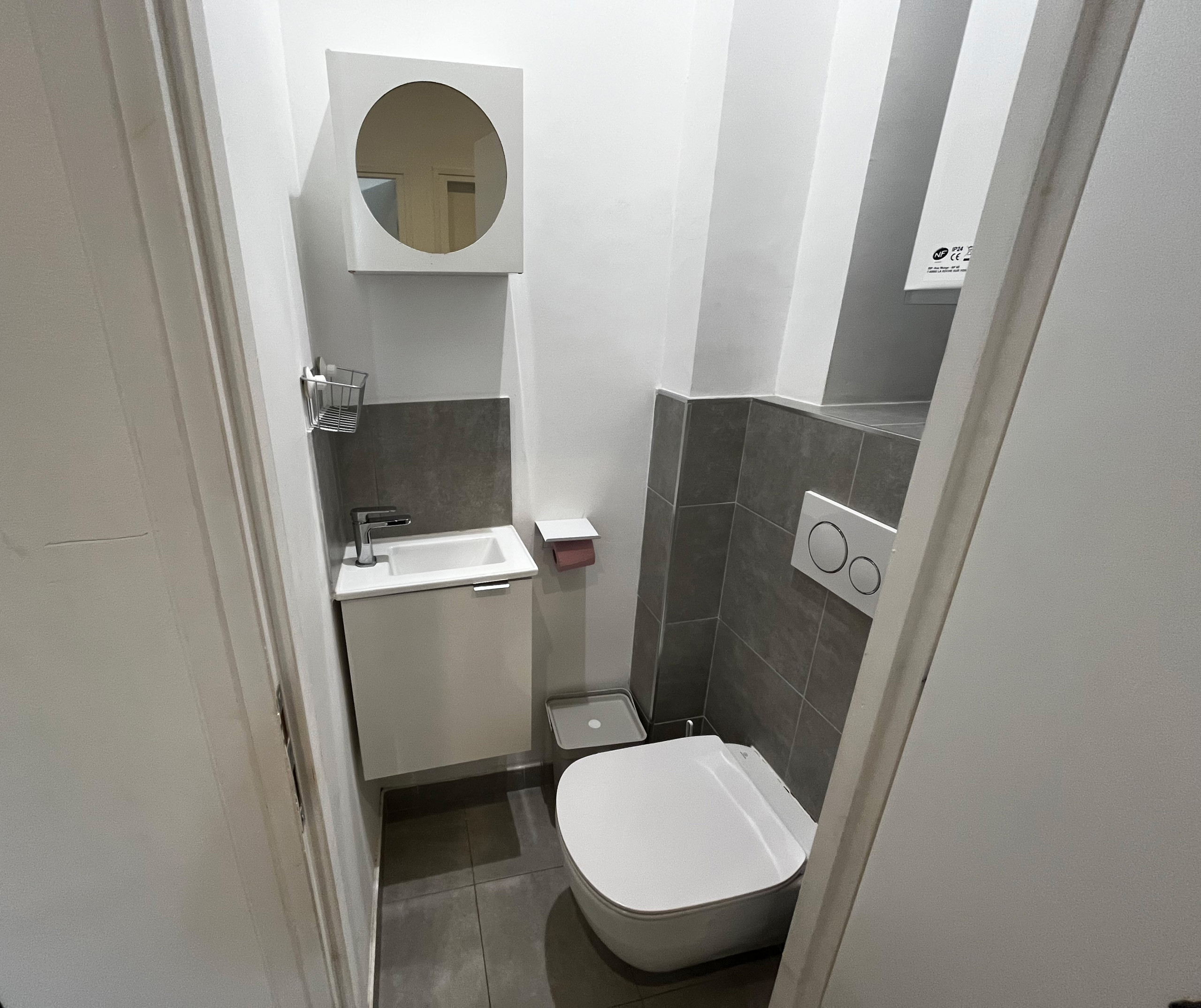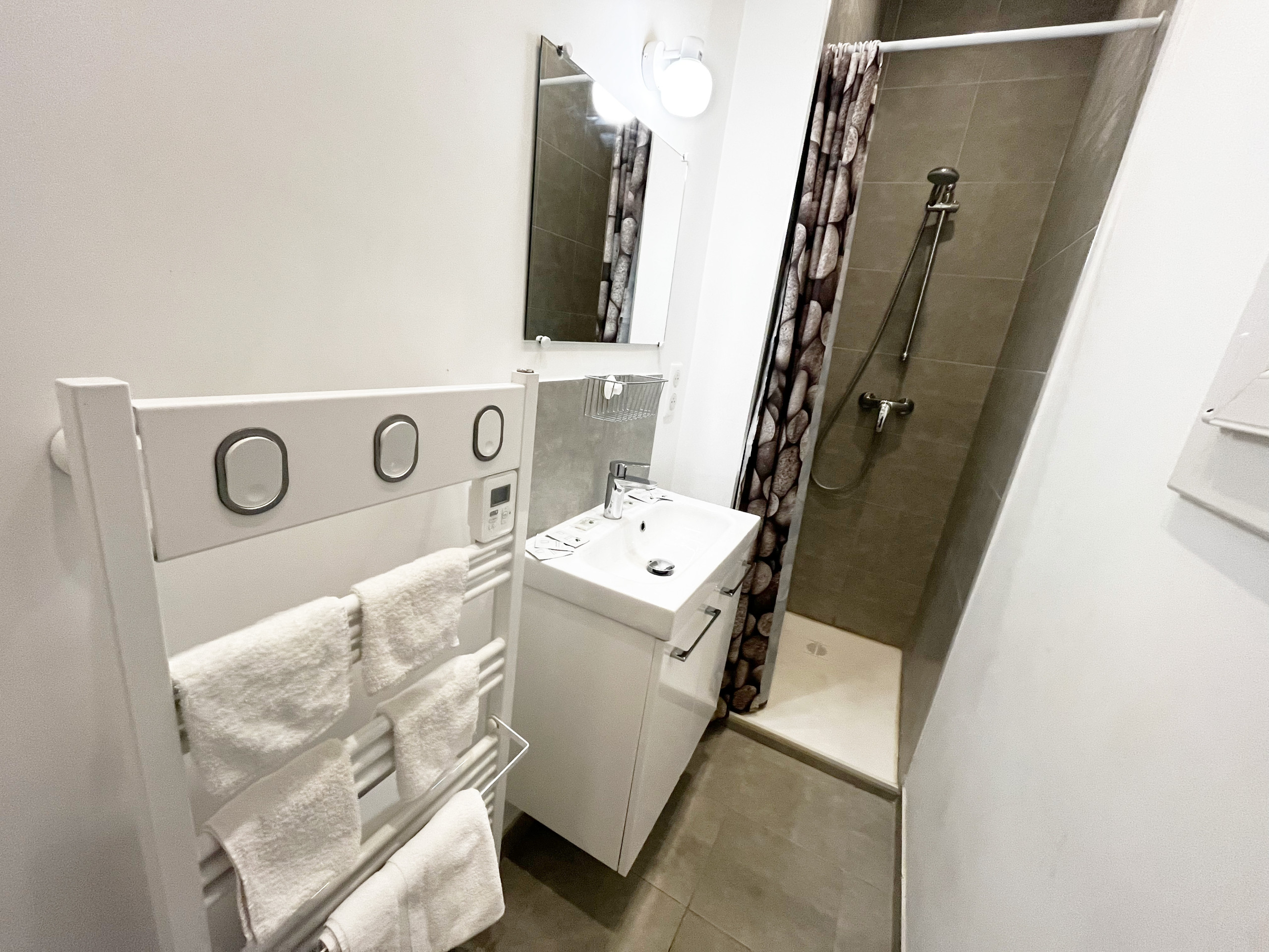 Il bagno è dotato di un lavabo, una doccia e un asciugacapelli. Un ferro da stiro è inoltre messo a vostra disposizione. L'alloggio dispone di riscaldamento elettrico e aria condizionata per garantire il vostro comfort durante tutto l'anno.