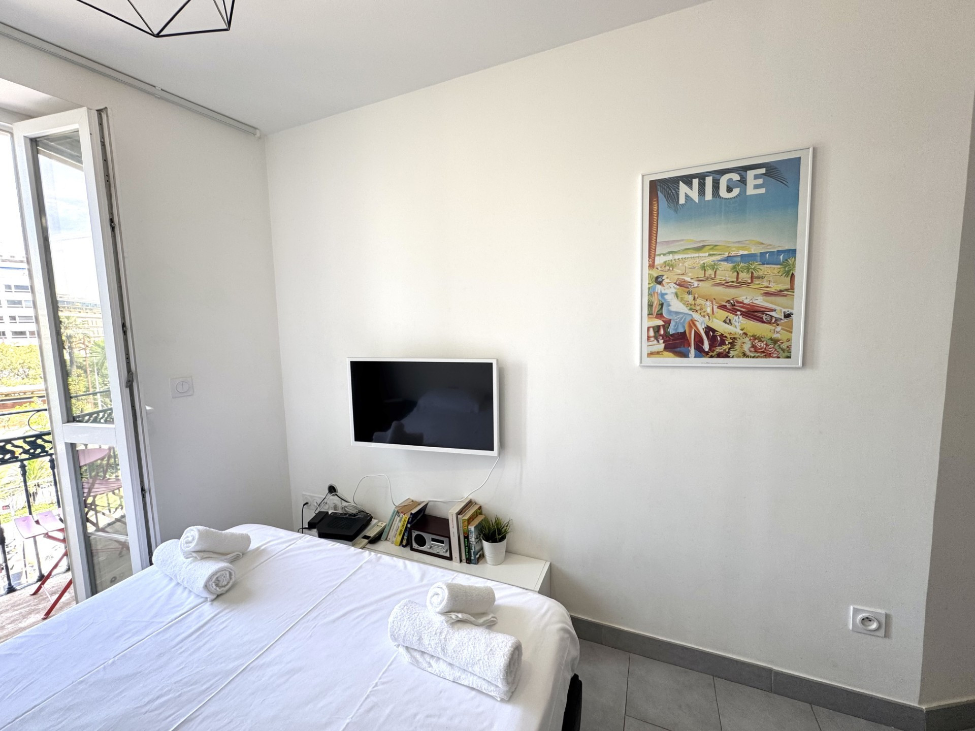 This 20 m² accommodation, bright and carefully decorated, has a charming little balcony with an unobstructed view of the Promenade du Paillon gardens, perfect for a morning coffee or an evening drink.